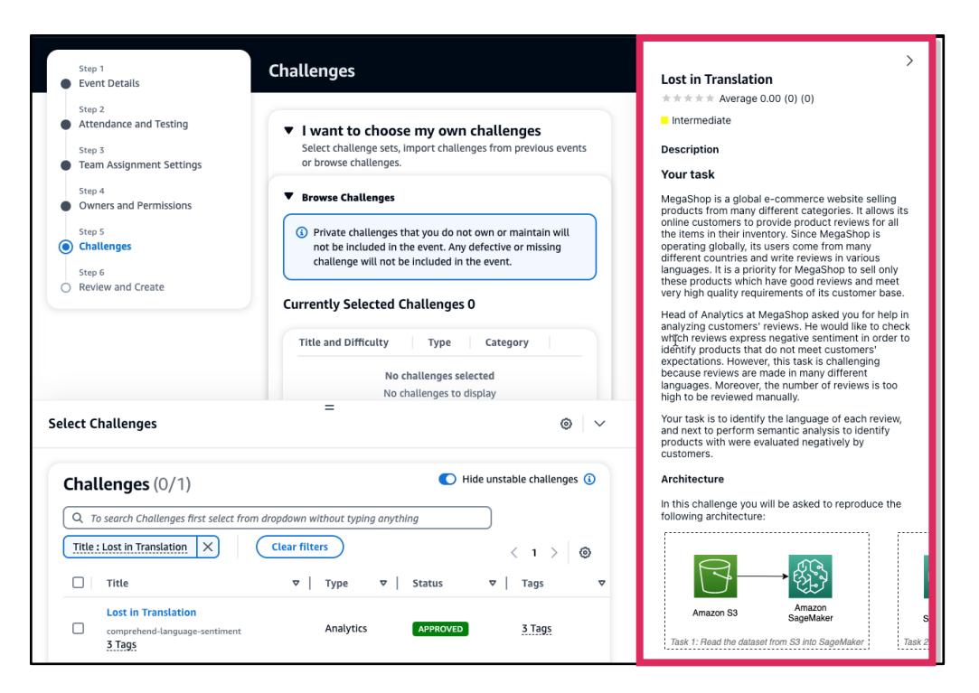 - Challengesステップでチャレンジを閲覧します。詳しく知りたいチャレンジのチャレンジタイトルを選択します。