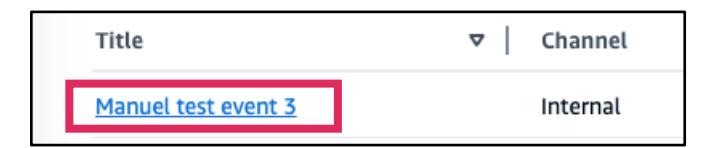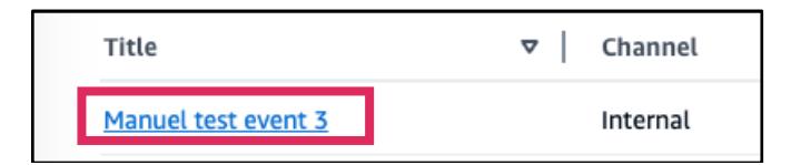 - 既存のイベントの一覧ページには、各イベントの名前が表示されます。既存のイベントのタイトルを選択します。