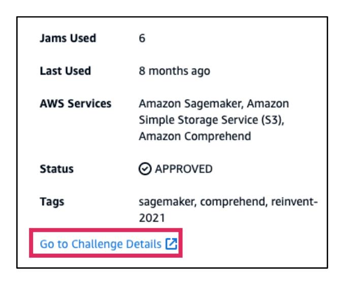 - より大きなビューでチャレンジの詳細を確認するには、チャレンジ情報パネルを下にスクロールし、Go to Challenge Detailsを選択します。