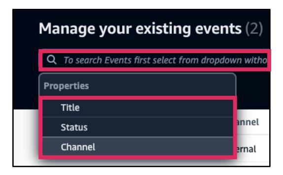 - プロパティ、日付範囲、イベントタイプ、終了したイベントで検索を絞り込むことができます。