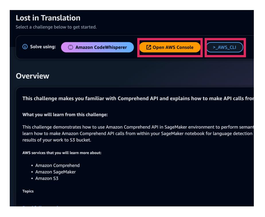 - You can begin working on the challenge using AWS Console or AWS CLI.