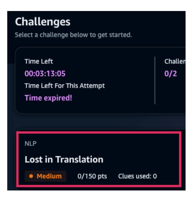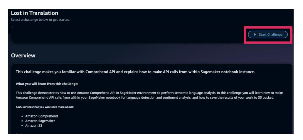 - In the challenge page choose Challenges on the left side of the page. Then choose a challenge name to open.