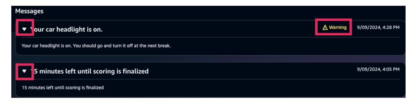 - Choose expand (upside down triangle) next to the message title to show the message body. > 📝 Note: You can receive two type of messages: informational and a warning. A warning type of message has a warning indicator.