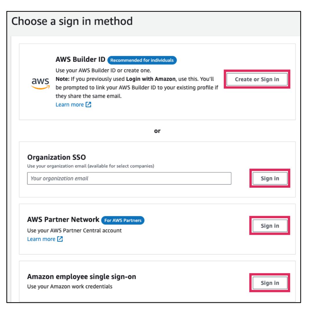 - Choose a sign in method depending on which account you want to use. Choose Create or Sign in or Sign In.