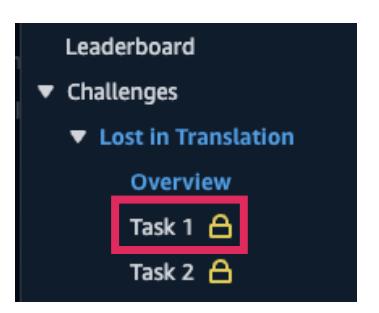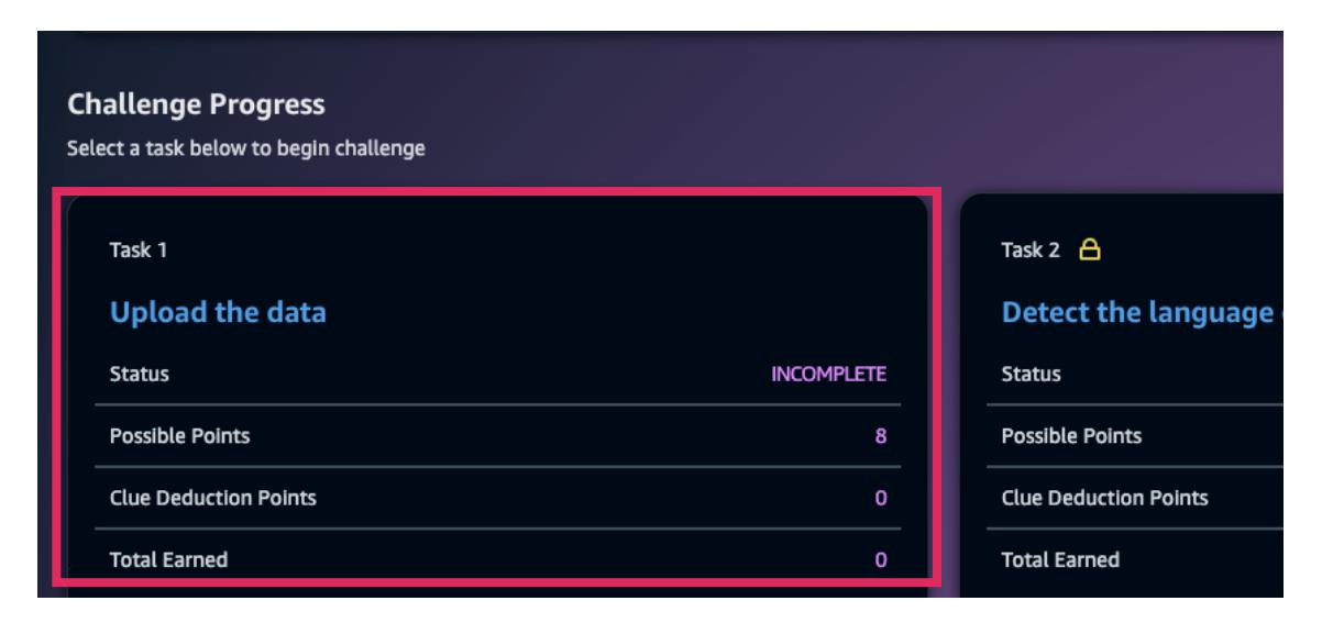 Choose Task 1, in the Challenge Progress section. > 📝 Note: Tasks are commonly solved in ascending order.